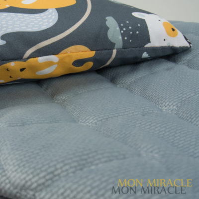 Płaska poduszeczka o wymiarach idealnych dla maluszka, która wykonana została z cudownej tkaniny bawełnianej o grubym satynowym splocie. Kolory nie spierają się, poduszeczka nie mechaci się. Jej wzór, kolory, dopracowana grafika dodają niesamowitego wrażenia wizualnego. Przywiązujemy szczególną uwagę do jakości tkanin, z których szyjemy.