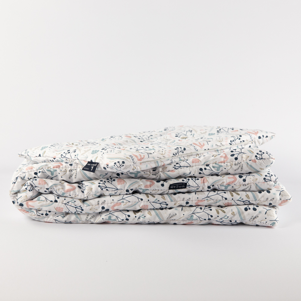 W zestawie – kołderka wypełniona antyalergiczną, lekką włókniną sylikonową, która zapewni Twojemu dziecku nie tylko właściwą temperaturę, ale też dostęp tlenu i odprowadzanie wilgoci. Płaska i bezpieczna poduszeczka pozwoli Twojemu maleństwu na spokojny sen. Nasze poduszki mają wyciągane wkłady. Można więc w każdej chwili zmienić grubość wypełnienia.