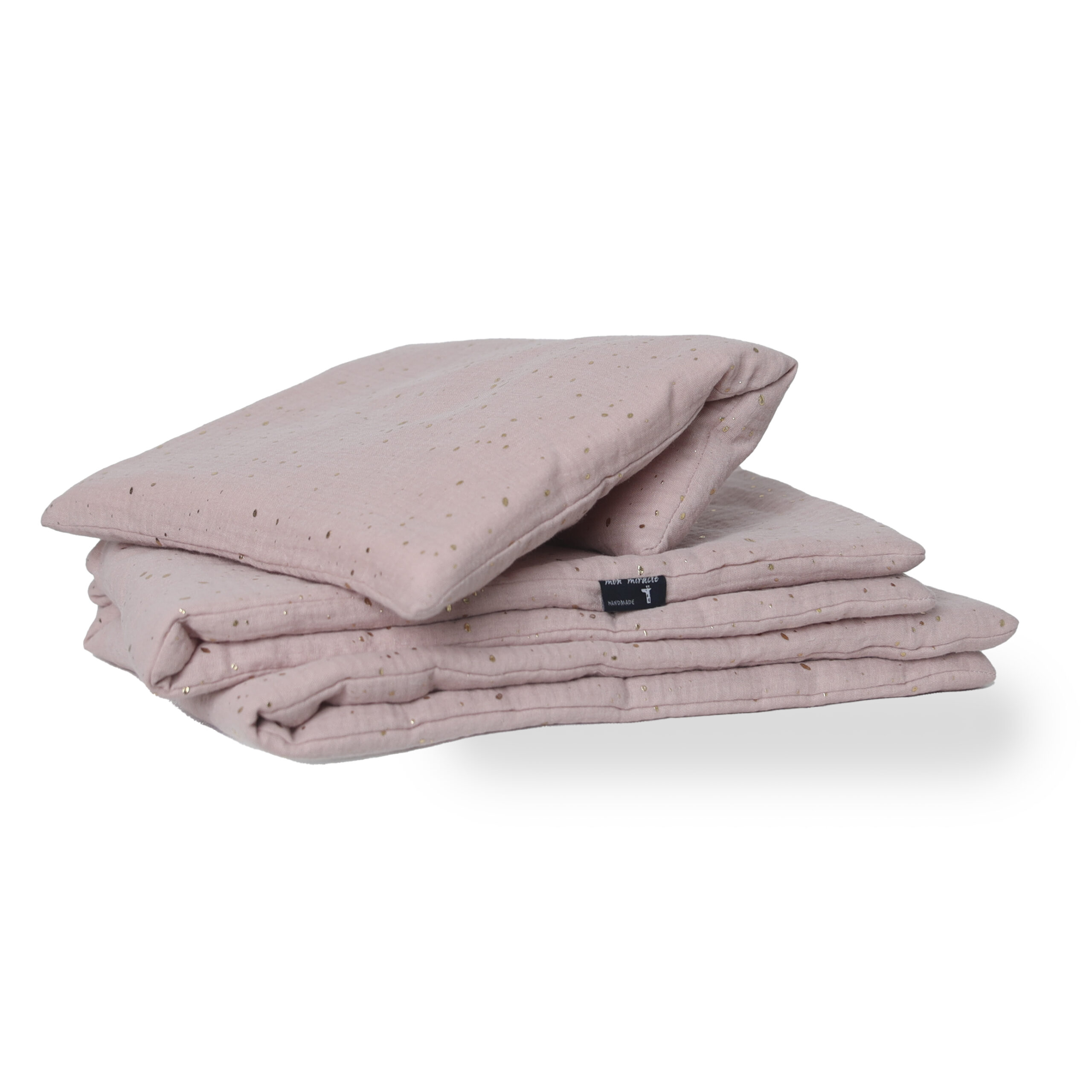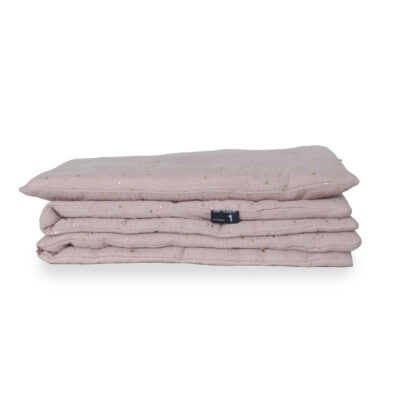 Komplet pościeli muślinowej DIRTY PINK AND GOLD 60 x 75 cm i 30 x 40 cm wprost idealnie nadaje się dla maleństwa. Z powodzeniem zastąpi tradycyjne pościele, doskonały do wózka, nosidełka, koszyka, czy łóżeczka.
