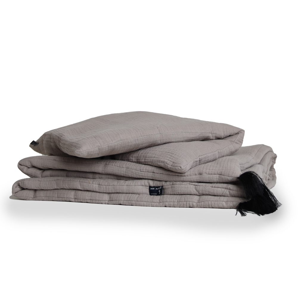 Komplet pościeli muślinowej SIMPLY TAUPE 80 x 100 cm i 40 x 60 cm.