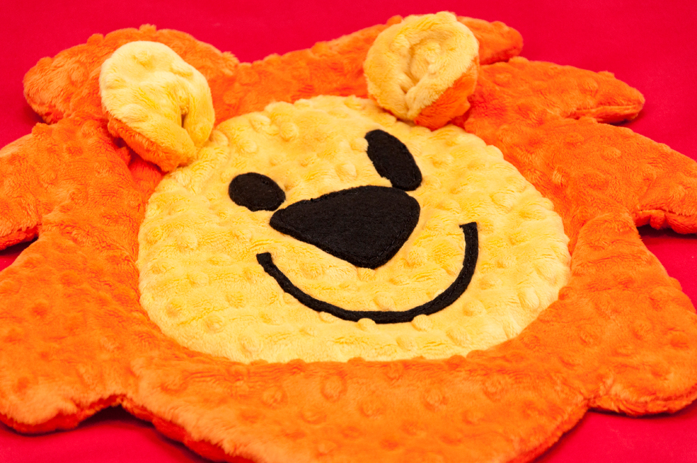 Kołderka i poduszka LEW wykonana jest z pięknej czerwonej tkaniny bawełnianej sprowadzonej ze Stanów Zjednoczonych od Timeless Treasures. Dodatkowo ozdobione zostały miękkim, kolorowym i puszystym Minky z Shannon Fabrics, tworząc obraz zadowolonego lwa, którego można „trzymać za grzywę i uszka”.